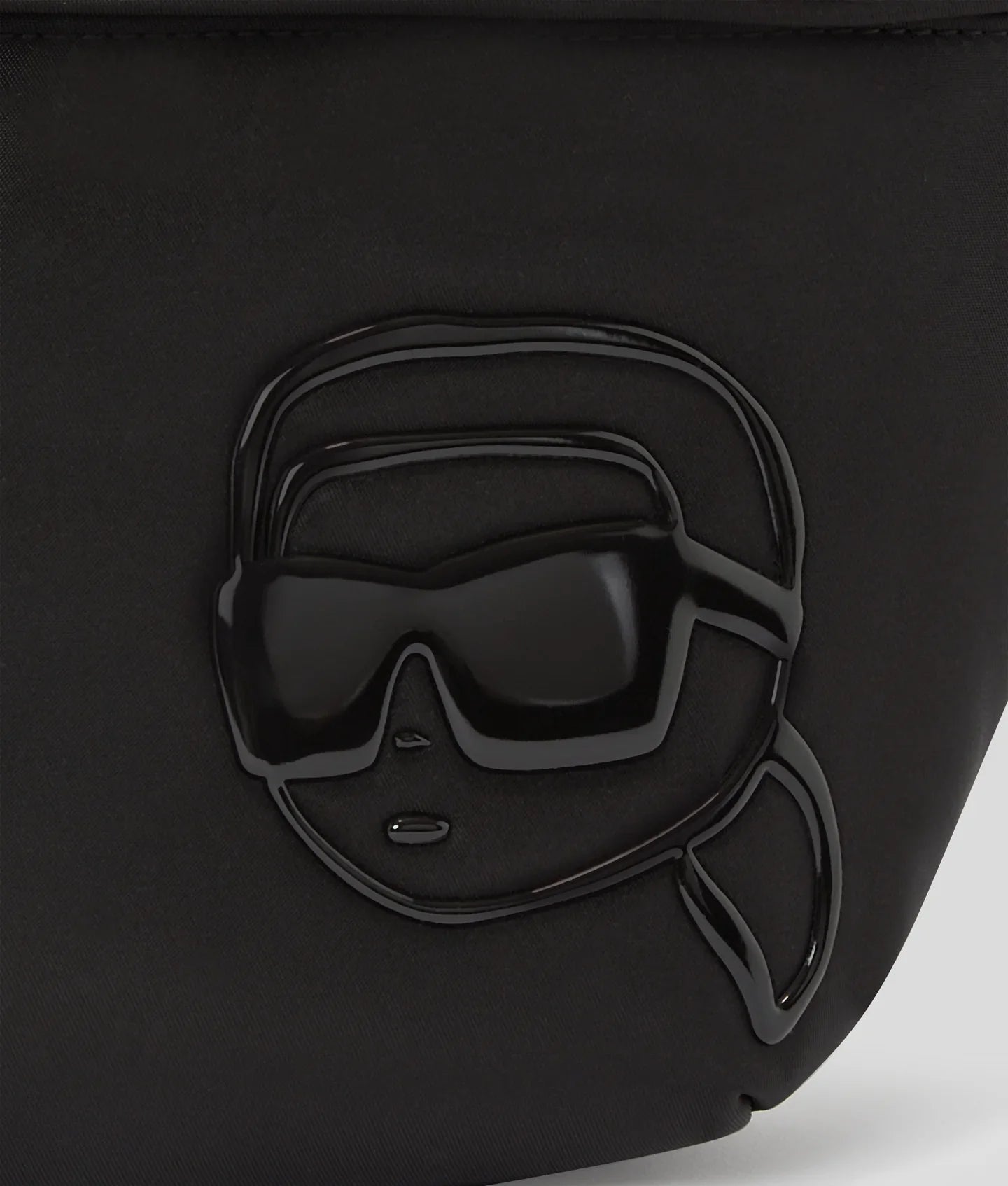 This belt bag combines modernity and practicality, featuring a secure zip closure and an adjustable strap for versatile wear. It is elevated by tonal IKON Karl artwork, making it a standout addition to your everyday accessories.