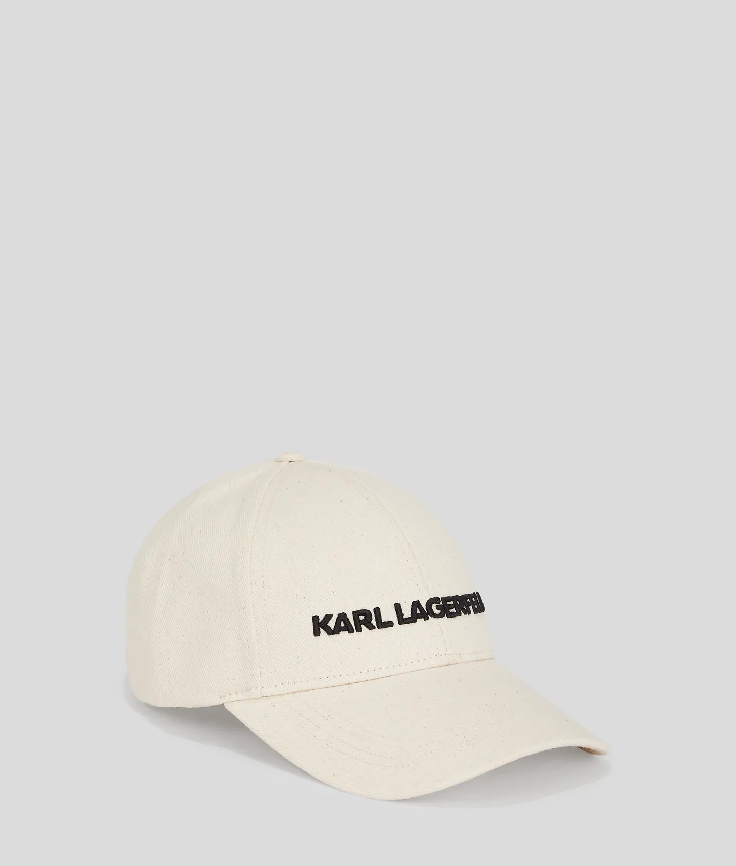 This cap features a six-panel design with a classic curved peak, offering a timeless silhouette. The contrasting KARL LAGERFELD logo at the front adds a distinctive touch, perfect for elevating any casual look.