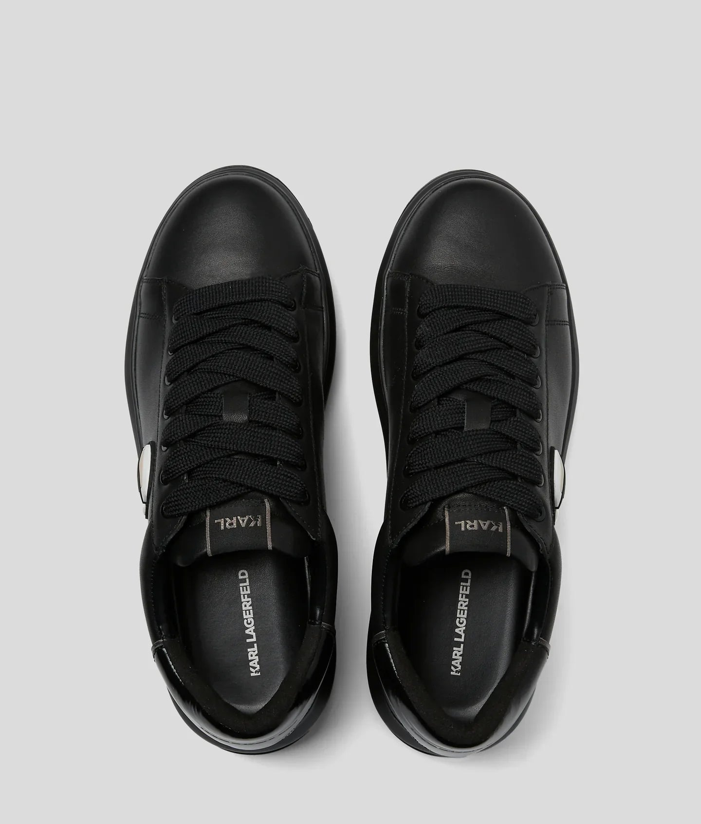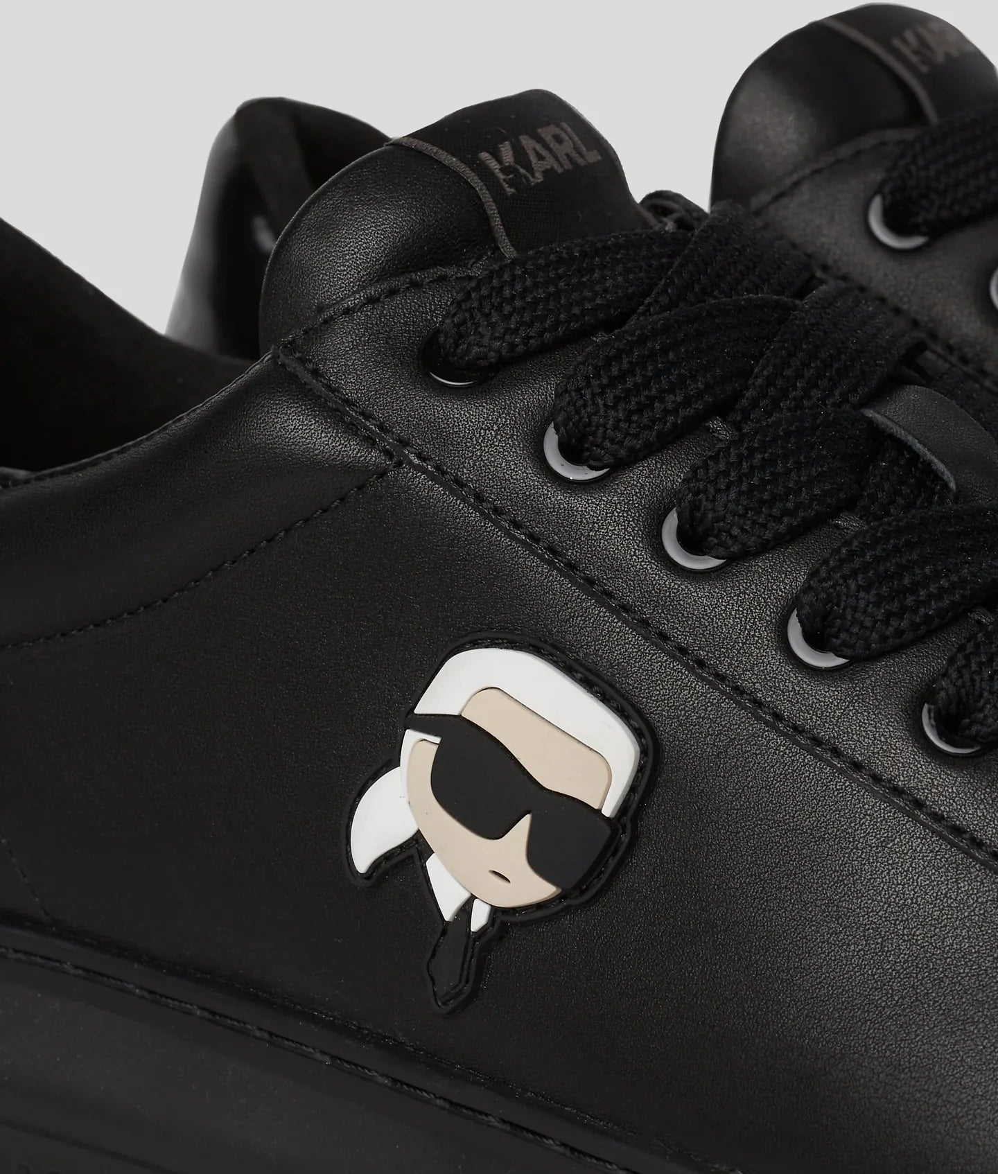 Luxurious leather sneakers from KARL LAGERFELD. featuring a lace-up design with a contrasting heel counter. Detailed with IKON Karl artwork at the side.