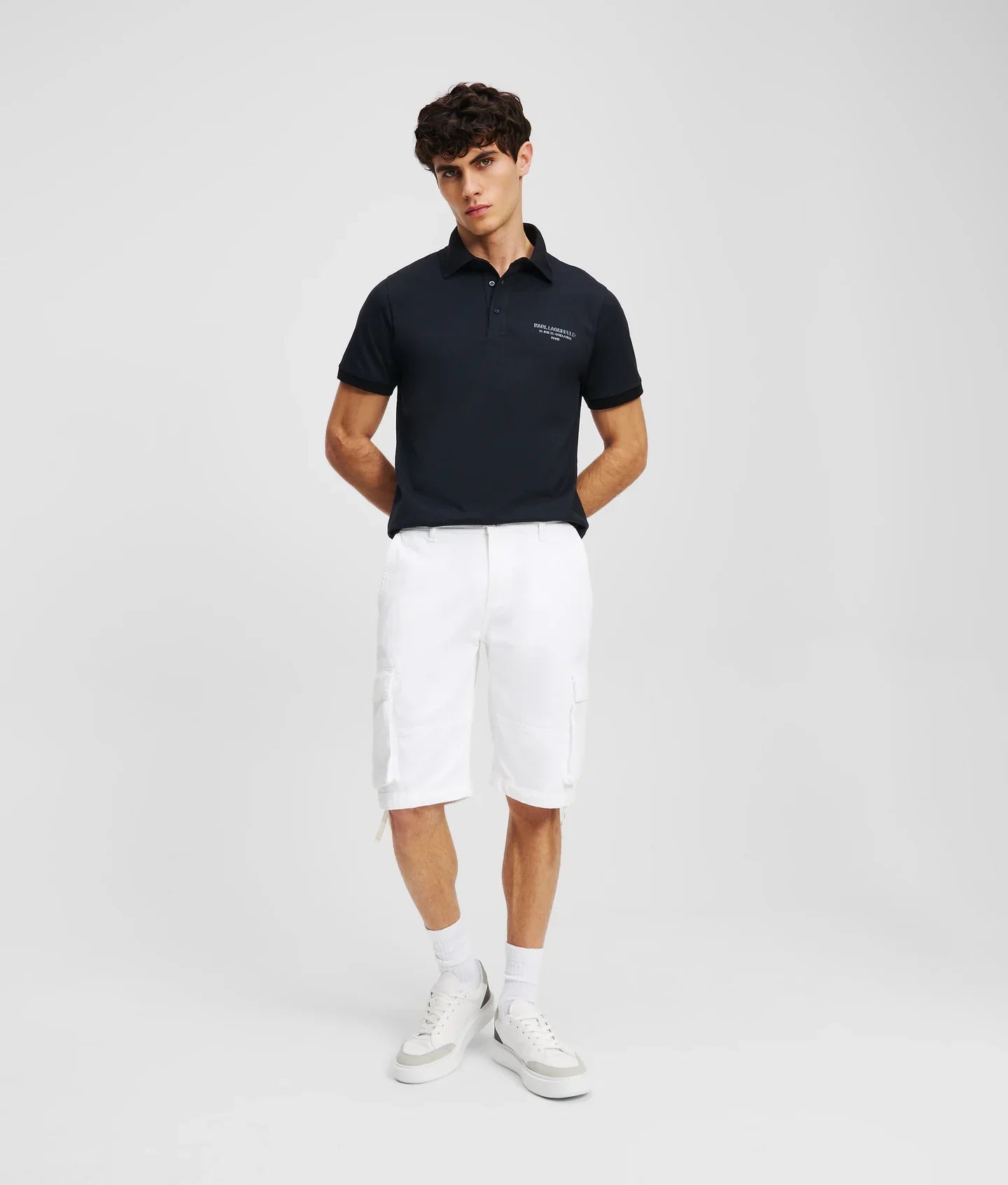 Designed for those who value both style and function, these cargo shorts feature eye-catching adjustable cuffs and multiple pockets. Complemented by signature KARL LAGERFELD embroidery, they provide versatility for any adventure.