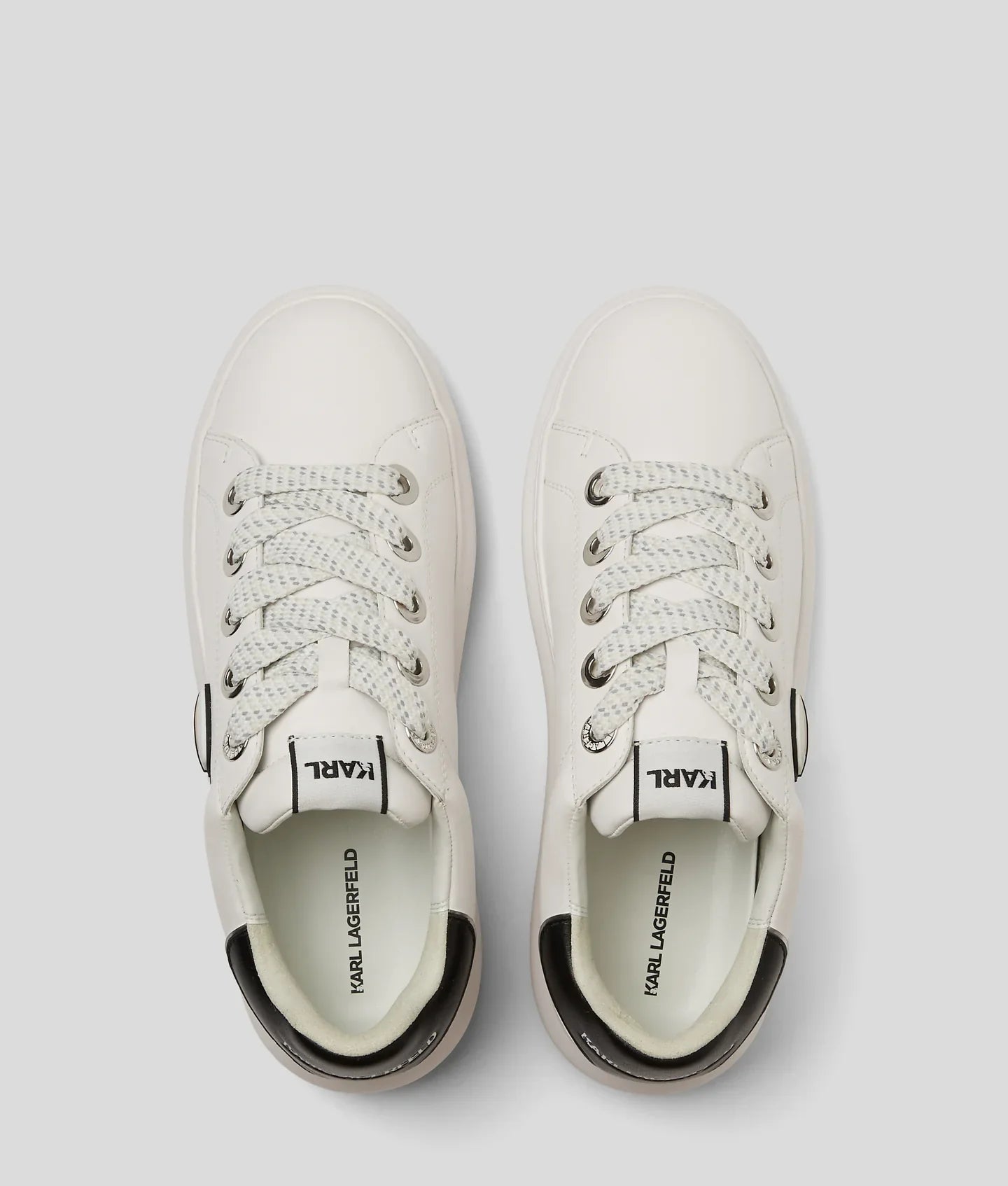 These leather sneakers by KARL LAGERFELD feature a lace-up design with a contrasting heel counter. IKON Karl artwork at the side adds a touch of personality to this classic sneaker silhouette.