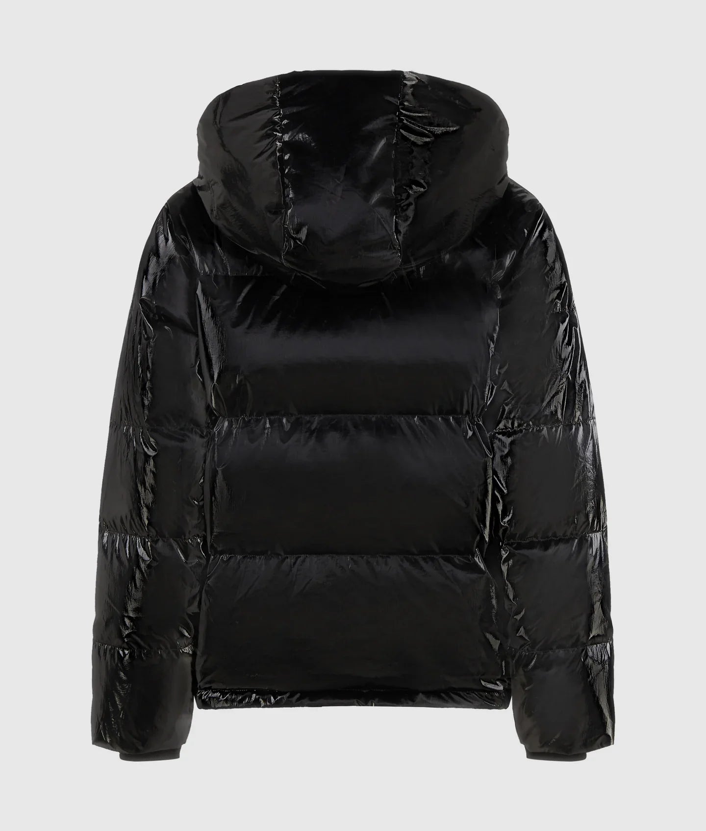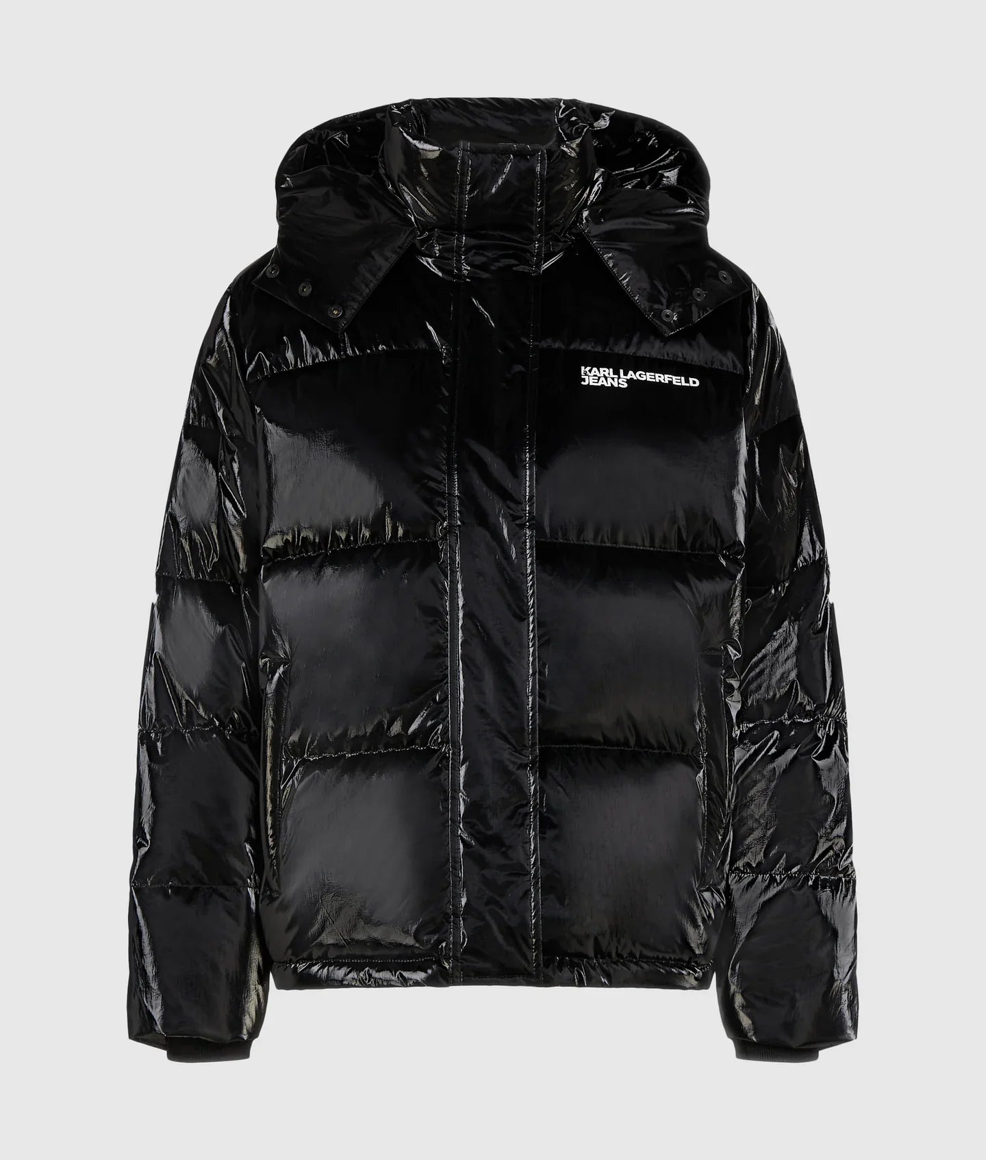 Brave the cold in style with this high-shine puffer jacket. Padded for warmth, the eye-catching design features a detachable hood for all-weather wear.
