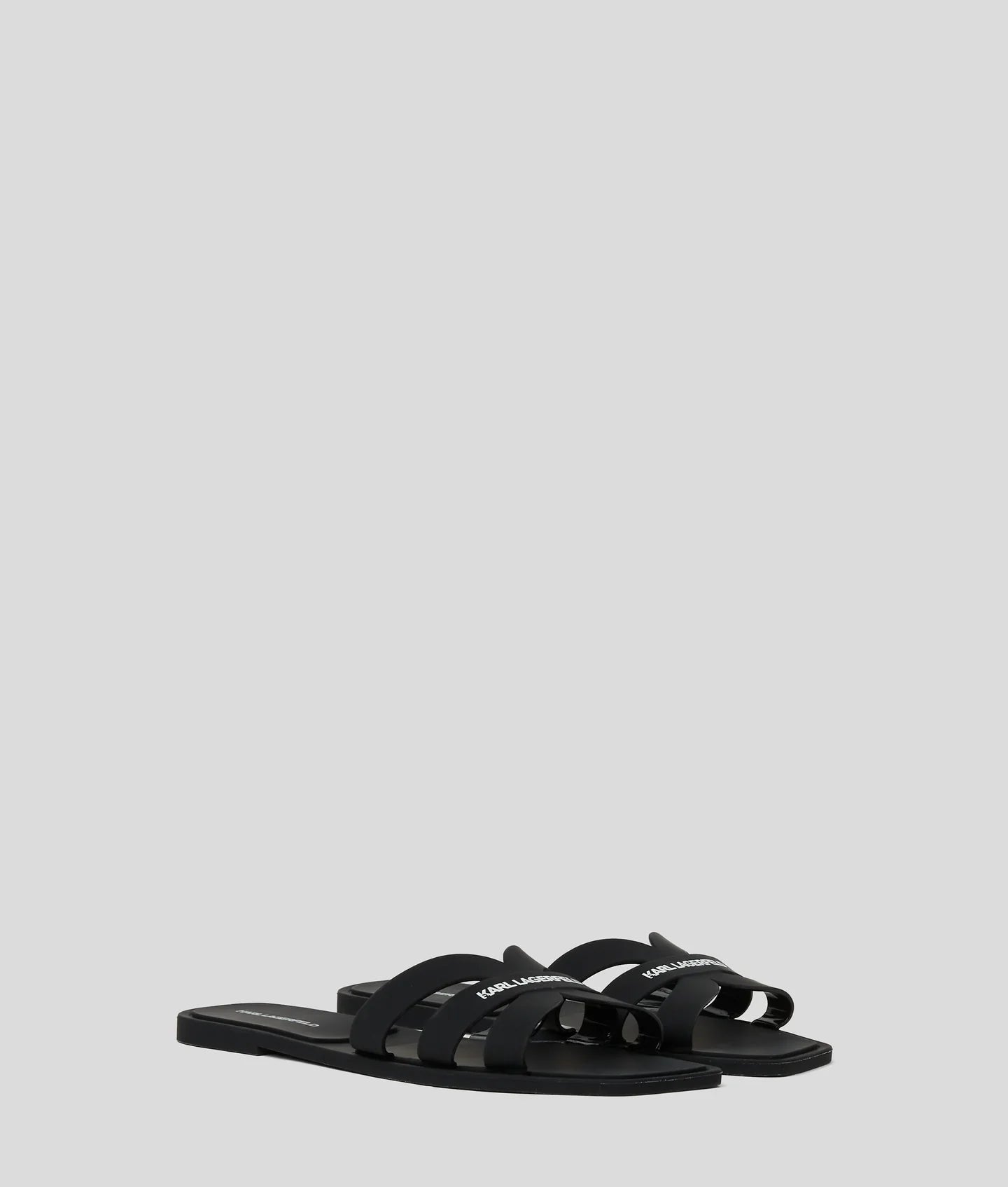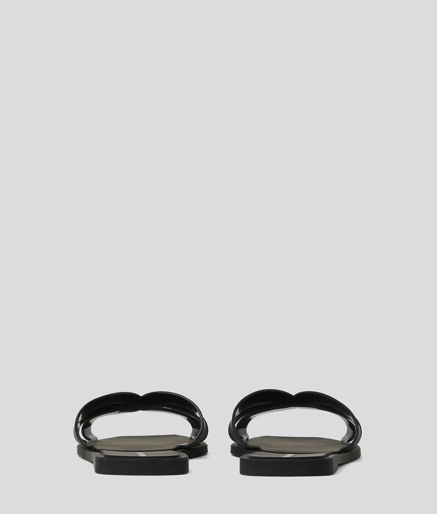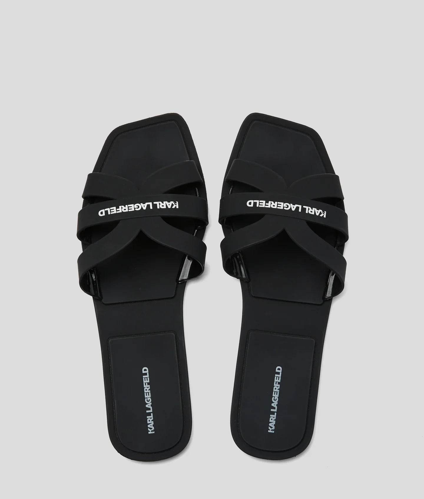 These jelly slippers feature a chic wide strap design adorned with playful cut-out details. The KARL LAGERFELD logo graces the footbed for a laidback yet iconic look.